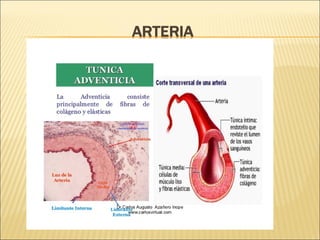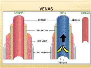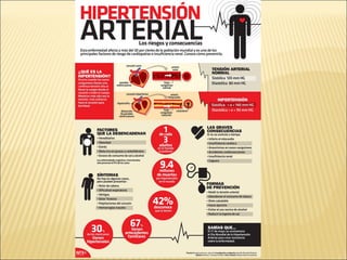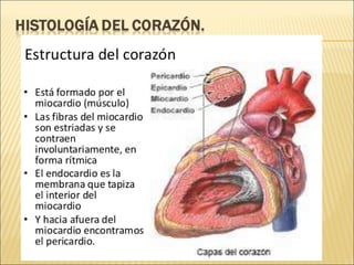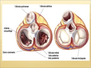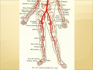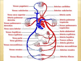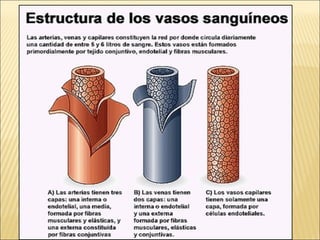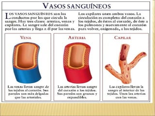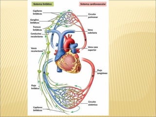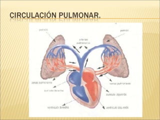 El documento describe la anatomía y fisiología del sistema circulatorio y cardiovascular. Incluye la estructura y función del corazón, los vasos sanguíneos, la circulación pulmonar y sistémica, y el sistema linfático. También explica cómo factores como la presión arterial, los lípidos en la sangre y el estilo de vida pueden afectar la salud cardiovascular.