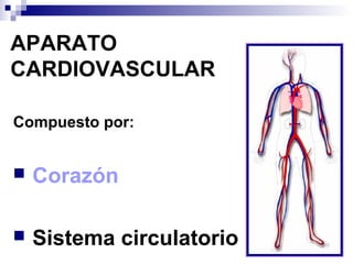 El documento resume el aparato cardiovascular. Explica que está compuesto por el corazón y el sistema circulatorio sanguíneo. Describe las características y estructura del corazón, incluyendo sus cavidades, vasos y válvulas. También explica el ciclo cardíaco y los sonidos del latido cardiaco. Por último, describe los componentes del sistema circulatorio sanguíneo, incluyendo arterias, venas y capilares.