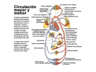 El documento describe el sistema circulatorio humano, incluyendo sus partes principales (corazón, vasos sanguíneos, sangre), sus funciones de transporte a través de la circulación doble, y posibles enfermedades como la anemia, trombosis e hipertensión arterial. También señala factores de riesgo como el tabaquismo, la obesidad y el estrés, y la importancia de hábitos saludables para el buen funcionamiento del sistema circulatorio.