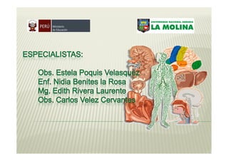 El documento habla sobre la importancia de la enseñanza que conecta corazón a corazón en lugar de solo de cabeza a cabeza. Muestra imágenes del sistema digestivo y pide a los estudiantes que cuenten una historia creativa basada en ellas. Luego, proporciona información sobre la anatomía, fisiología y enfermedades del sistema digestivo.