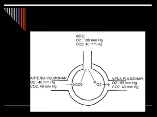 Este documento describe la anatomía y fisiología del aparato respiratorio humano. Explica las vías respiratorias como las fosas nasales, la faringe, la laringe y los pulmones. Describe el proceso de la ventilación pulmonar, el intercambio gaseoso y el transporte de oxígeno y dióxido de carbono en la sangre. También resume la regulación de la respiración a través de los centros y quimiorreceptores respiratorios.
