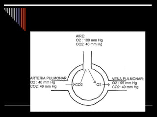 El documento describe la anatomía y fisiología del aparato respiratorio. Las vías respiratorias incluyen las fosas nasales, faringe, laringe, tráquea, bronquios y bronquiolos que conducen el aire a los pulmones. La laringe contiene las cuerdas vocales. Los pulmones están formados por alvéolos rodeados de capilares sanguíneos donde ocurre el intercambio gaseoso entre el aire y la sangre. El proceso respiratorio implica la ventilación pulmonar y el transport