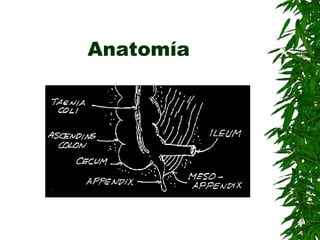 La apendicectomía laparoscópica es una técnica quirúrgica que permite extirpar el apéndice a través de pequeñas incisiones mediante instrumentos quirúrgicos insertados a través de trócares. Presenta ventajas como menor tasa de infecciones, mejor resultado cosmético e igual tasa de abscesos postoperatorios en comparación con la laparotomía convencional. La técnica implica la revisión abdominal, exposición y ligadura del mesoapéndice y apéndice inflamado, su se