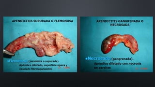 1. La apendicitis aguda es la cirugía de emergencia abdominal más común y se produce cuando se obstruye el apéndice causando una infección.