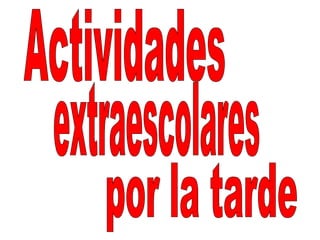 Este documento lista varias actividades extracurriculares con sus horarios y fechas de inicio en un instituto. Algunas actividades son los martes y viernes de 4:30 a 5:30 empezando el 7 de noviembre, los lunes de 6:30 a 7:30 empezando el 29 de septiembre, y los jueves de 4 a 5 y de 5 a 6 en el salón de actos y gimnasio empezando a partir del 2 y 9 de octubre.