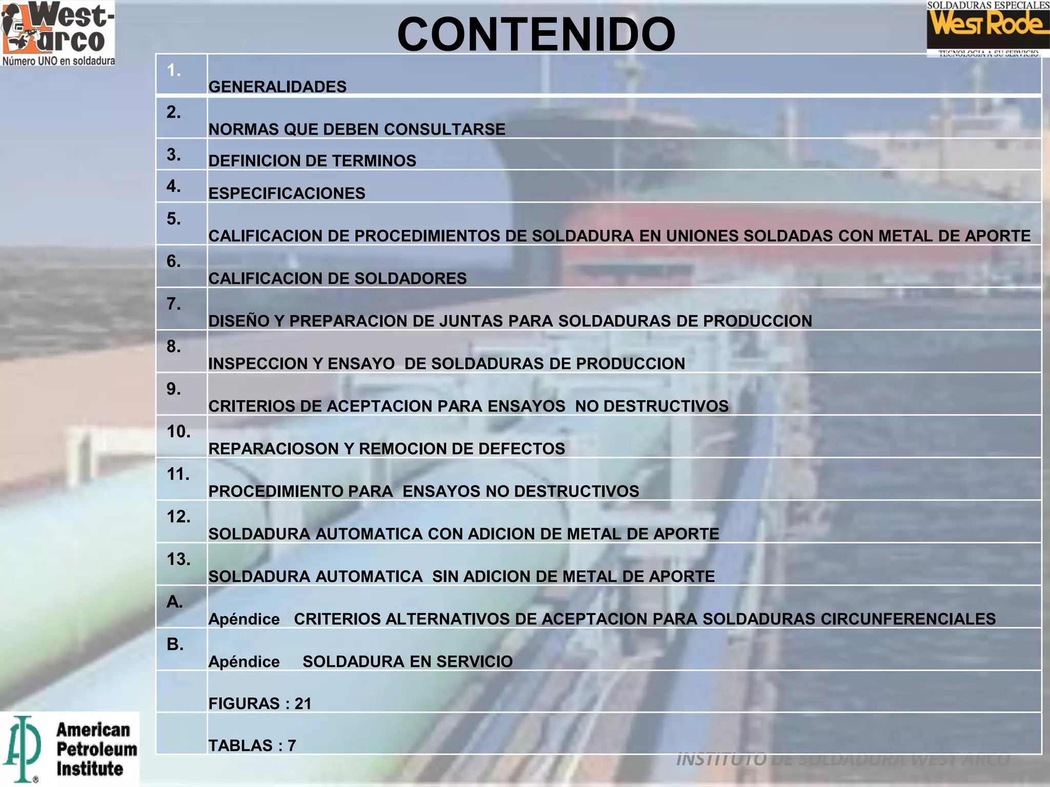 Este documento establece los estándares y especificaciones para la soldadura de tuberías y facilidades relacionadas para el transporte de gas y petróleo. Cubre temas como la calificación de procedimientos y soldadores, diseño de juntas, inspección y pruebas de soldaduras, y criterios de aceptación. Proporciona detalles sobre los materiales, equipos, procesos y parámetros de soldadura a considerar para garantizar soldaduras de alta calidad.