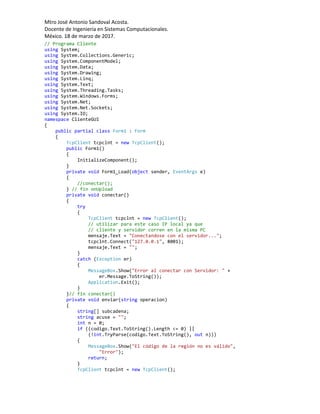 Este documento describe una aplicación cliente-servidor para realizar operaciones CRUD (crear, leer, actualizar, borrar) en una tabla de una base de datos. La aplicación cliente permite insertar, consultar, actualizar y eliminar registros mediante una interfaz gráfica. Envía las solicitudes al servidor, el cual las procesa y envía una respuesta. El servidor se conecta a la base de datos para realizar las operaciones y enviar notificaciones al cliente.