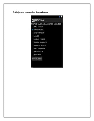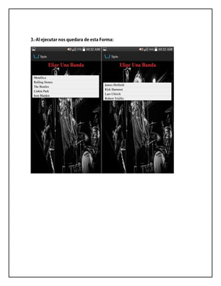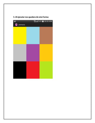 Este documento proporciona instrucciones para crear 20 aplicaciones móviles diferentes en Android, incluyendo apps Hola Mundo, tabla de multiplicar, cambiar fondo de pantalla, calculadora básica, reproductor de video y más. Explica los conceptos básicos de Android como actividades, layouts, widgets y más.
