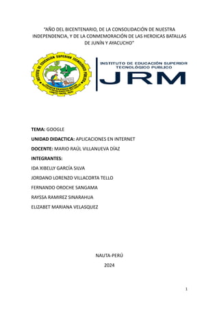 El documento es una monografía que analiza en profundidad la historia, funciones y productos de Google, destacando su evolución desde 1995 hasta convertirse en una de las empresas tecnológicas más influyentes del mundo. Incluye una descripción detallada de sus principales servicios como Gmail, Google Maps, YouTube y Google Drive, así como las ventajas y desventajas de su uso. Además, se destacan aspectos como su impacto en la industria de internet y su modelo de negocio diversificado.