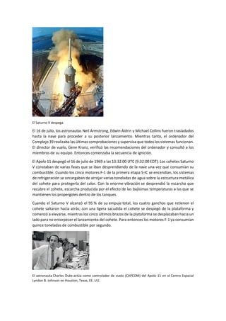La misión Apolo 11 de la NASA en 1969 fue la primera en lograr el alunizaje de seres humanos en la Luna. La tripulación, compuesta por Neil Armstrong, Buzz Aldrin y Michael Collins, despegó del Centro Espacial Kennedy a bordo del cohete Saturno V el 16 de julio. El módulo lunar Eagle alunizó con éxito en el Mar de la Tranquilidad el 20 de julio, y Armstrong se convirtió en la primera persona en pisar la Luna al día siguiente. La misión marcó un hito decisivo en la carrera espac