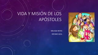 Este documento resume la vida y misión de los doce apóstoles de Jesucristo. Brevemente describe a cada uno de los apóstoles, incluyendo su lugar de origen, actividades evangelísticas y forma de martirio en algunos casos. Proporciona detalles sobre Andrés, Bartolomé, Santiago el Mayor, Santiago el Menor, Juan, Judas Iscariote, Judas Tadeo, Mateo, Pedro y Felipe.