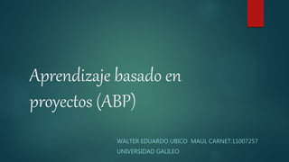 El documento describe el aprendizaje basado en proyectos (ABP), incluyendo su definición como una estrategia que involucra tareas basadas en la resolución de problemas mediante investigación y creación, y que culmina con un producto final. Explica los pasos del ABP como la activación, investigación, desarrollo y presentación del proyecto, y destaca que el rol del profesor es facilitar el aprendizaje de los estudiantes más que ser un experto en el tema. También cubre cómo evaluar los proyectos usando rúbric