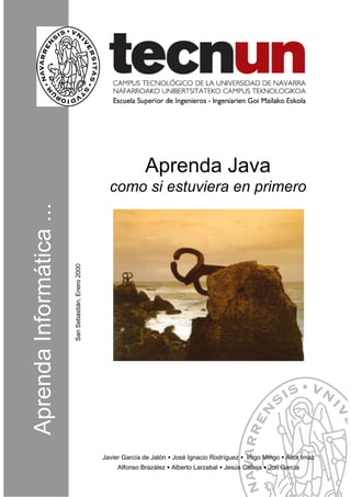 Este documento presenta una introducción a Java y proporciona una guía para aprender a programar en este lenguaje. Explica conceptos clave como clases, objetos, herencia, paquetes e interfaces. También incluye un ejemplo completo de un programa Java con múltiples clases que ilustra estos conceptos. Además, cubre temas como variables, operadores, estructuras de control, métodos, arrays y colecciones de objetos.