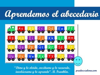 El documento presenta una lista de palabras en inglés y español relacionadas con objetos comunes que comienzan con cada letra del alfabeto, desde la A hasta la Z, con el propósito de practicar el vocabulario básico en ambos idiomas.