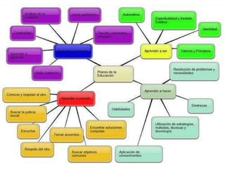 El documento aborda la importancia de aprender a convivir en el contexto educativo del siglo XXI, resaltando el valor del trabajo en equipo y la convivencia social. Se discuten las 'nuevas ignorancias' que surgen en la globalización y la necesidad de desarrollar nuevas alfabetizaciones para enfrentar estos desafíos. La enseñanza de la convivencia debe centrarse en construir comprensión, respeto y valores comunes entre diversos grupos sociales.