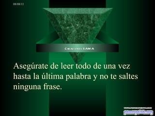 El documento contiene una serie de reflexiones sobre lecciones aprendidas a lo largo de la vida. Algunas de estas lecciones son que la vida pasa rápido, que es mejor estar agradecido por lo que se tiene, y que son los pequeños momentos cotidianos los que hacen la vida especial. Otras lecciones incluyen valorar a los demás y mostrar aprecio a través de una sonrisa.