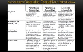 El documento describe el aprendizaje cooperativo y sus características clave. Explica que el aprendizaje cooperativo implica el trabajo en grupos pequeños donde los estudiantes colaboran para mejorar su propio aprendizaje y el de los demás. También requiere interacción, metas compartidas, respeto mutuo y responsabilidad compartida entre los miembros del grupo.