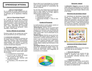 Este documento describe los principios de la educación integral y el aprendizaje integral. Define las dimensiones de la educación integral como la afectiva, comunicativa y estética. Explica que la educación integral busca desarrollar de manera holística al estudiante a través de valores, planes de estudio y actividades. También describe teorías de aprendizaje como el conductismo y el cognitivismo, así como canales de percepción y elementos del aprendizaje integral como las dimensiones ética, espiritual y cognitiva.