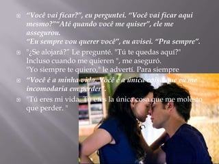 Este documento contiene varias citas y diálogos entre personajes de la saga Crepúsculo. En ellos, Bella y Edward expresan su amor el uno por el otro utilizando frases románticas. También se mencionan a otros personajes como Damon y Stefan en Los Diarios del Vampiro.