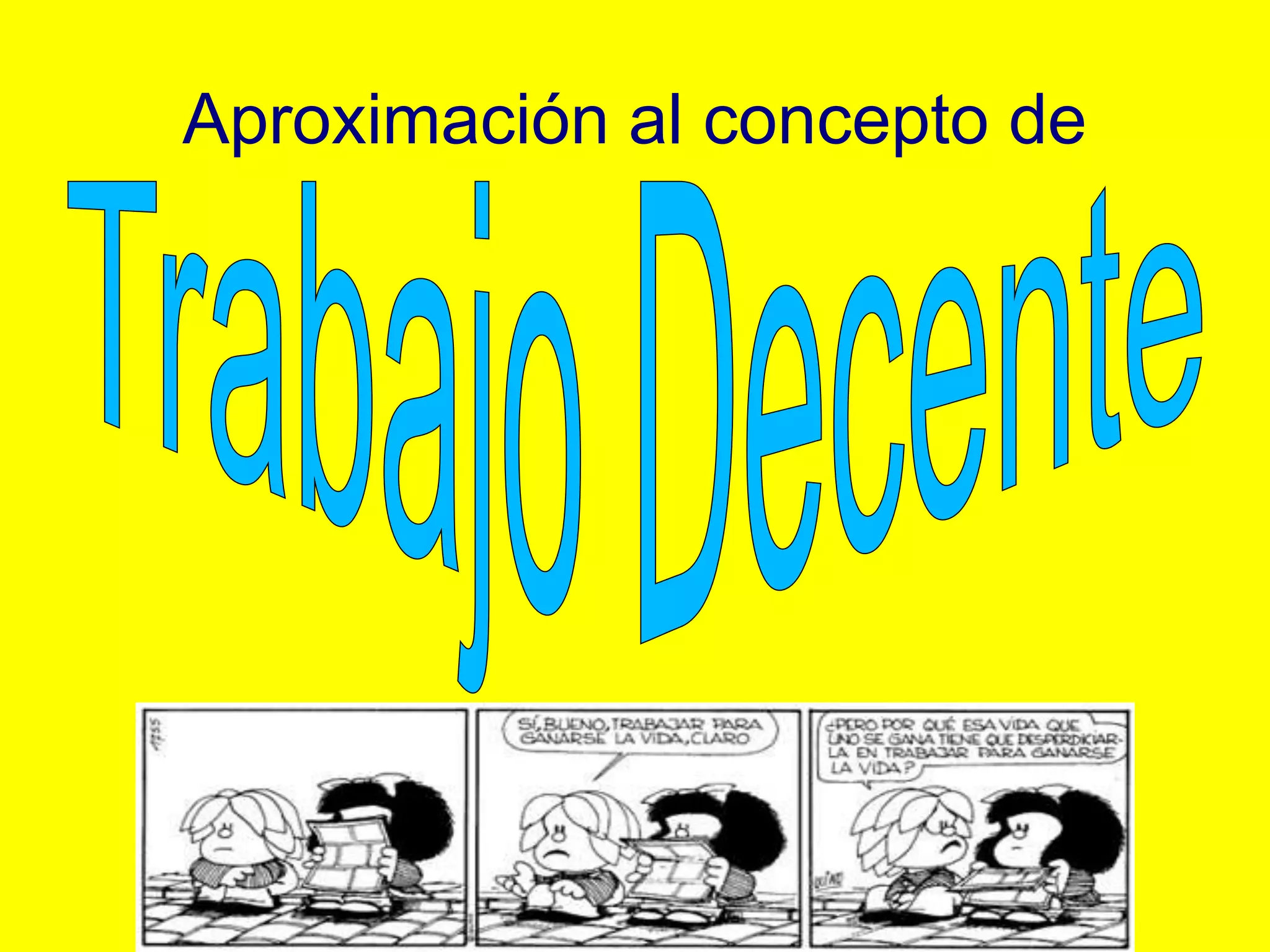 Este documento presenta información sobre el concepto de trabajo decente según la Organización Internacional del Trabajo (OIT). Explica que la OIT define el trabajo decente como una ocupación que es justamente remunerada, productiva y que respeta la dignidad humana, ejercida en condiciones de libertad, equidad, seguridad y salud. Incluye enlaces a videos e información adicional sobre la OIT y el trabajo decente.
