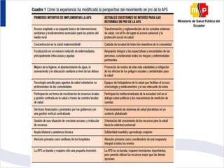 La salud es un proceso social y político complejo que requiere decisiones políticas a nivel estatal para comprometer a todos los sectores. La atención primaria de salud es la asistencia sanitaria esencial, accesible y a bajo costo para la comunidad y el país, y forma el núcleo del sistema de salud. La atención primaria provee servicios de diagnóstico, prevención, tratamiento y rehabilitación a nivel local para beneficiar a la comunidad.