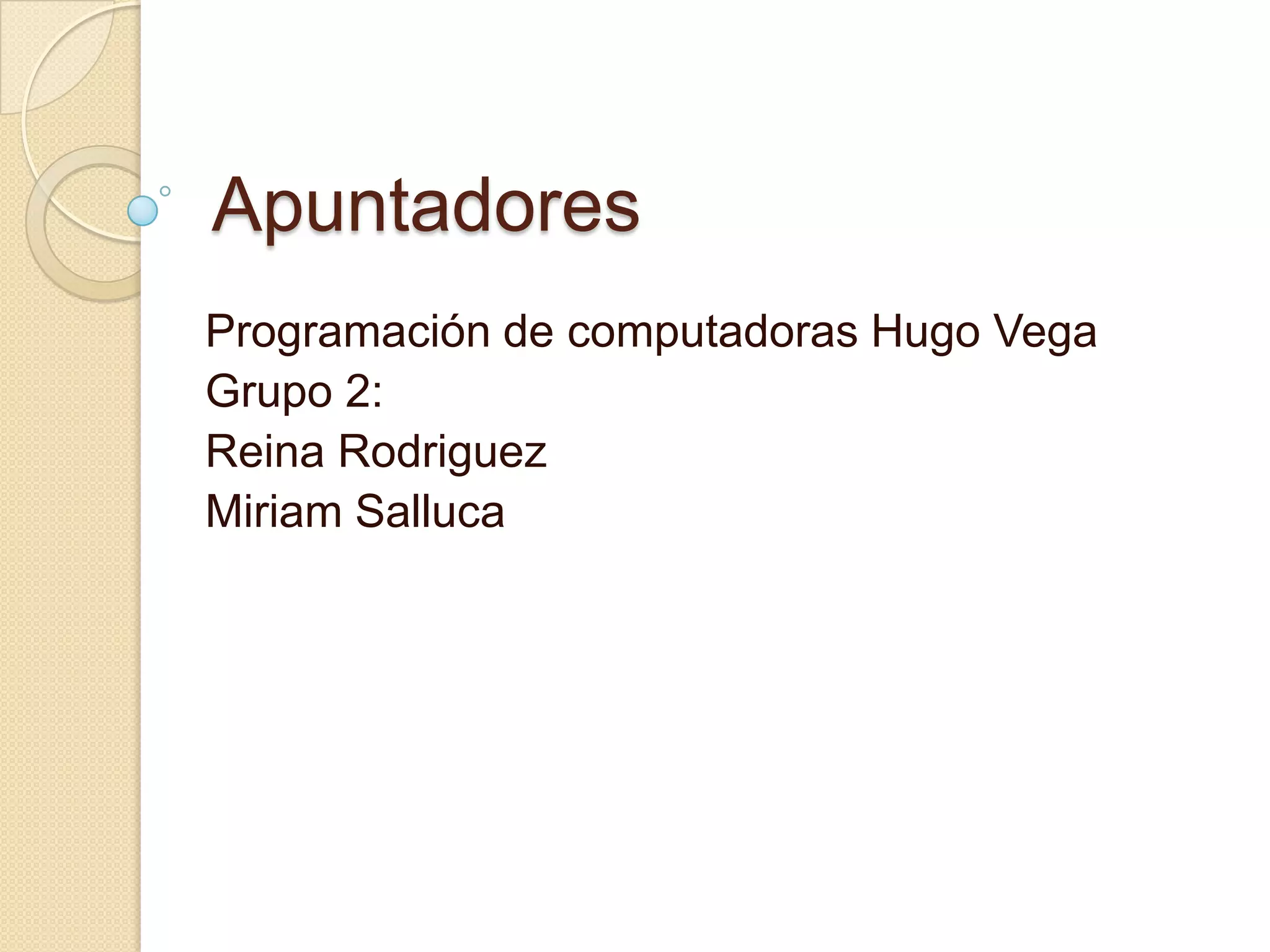 Los apuntadores permiten simular el paso por referencia y crear estructuras de datos dinámicas como listas enlazadas. Los apuntadores a funciones permiten pasar punteros a funciones como parámetros. La declaración de un puntero a función es similar a la declaración de una función normal pero anteponiendo un asterisco.