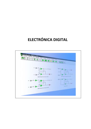 Este documento trata sobre electrónica digital y señales digitales. Explica los tipos de señales, su representación, el sistema binario y funciones lógicas básicas como AND, OR y NOT. Incluye tablas de conversión entre decimal y binario, tablas de verdad y diagramas para ilustrar las funciones lógicas.