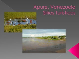 Este documento contiene información sobre varios ríos y lugares en Venezuela y Colombia. Describe el río que separa a Colombia y Venezuela y menciona algunos ríos y lugares turísticos en los llanos venezolanos como el río Apure, el estero de Camaguán y la población de Corozopando. También habla sobre un sitio localizado en los llanos occidentales que se usa para investigaciones científicas debido a su diversidad de flora y fauna, y menciona otros lugares como unos médanos naturales y un
