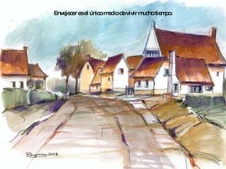 Este documento presenta reflexiones sobre el envejecimiento y las diferentes etapas de la vida. Aborda temas como la madurez, la juventud, la vejez y la sabiduría que viene con la edad. Resalta que envejecer es la única forma de vivir mucho tiempo y que a medida que envejecemos pasamos de la pasión a la compasión. También reconoce que aunque los jóvenes creen que los viejos son tontos, los viejos saben que los jóvenes lo son.