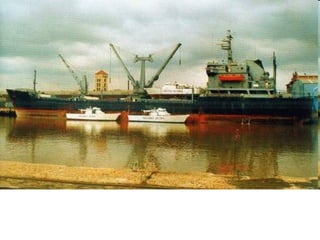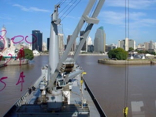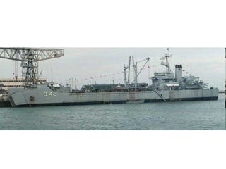Este documento presenta una lista de buques de la Armada Argentina agrupados por tipo, incluyendo transportes navales, buques tanque, buques de desembarco, buques taller y buques logísticos. Se enumeran más de 50 buques individuales con sus nombres y años de servicio. La lista proporciona una visión general de la flota de buques de la Armada Argentina en diferentes períodos de tiempo.