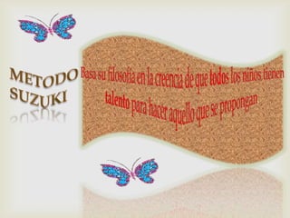 El documento discute los principales elementos de la música como el tono, la melodía y el ritmo. Explica que la música se desarrolla a través de habilidades como la percepción, ejecución, producción y emociones/inteligencia musical. También destaca que la música favorece el desarrollo del pensamiento lógico, la sensibilidad y otras habilidades en los niños.