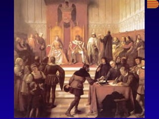 Este documento defiende que Aragón fue un importante reino medieval que formó parte de un imperio que abarcó gran parte del Mediterráneo occidental y que tuvo un papel fundamental en la formación de España. Sin embargo, su historia a menudo ha sido manipulada u olvidada. La exposición "Aragón, reino y corona" ayudó a recordar las contribuciones de Aragón y criticó a quienes tergiversan u ocultan su pasado.
