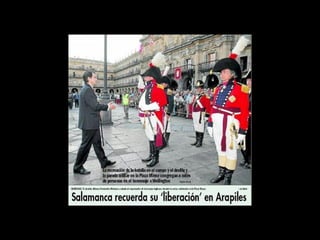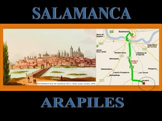 La Batalla de Los Arapiles o de Salamanca en 1812 fue un episodio clave de la Guerra de la Independencia Española donde las tropas anglo-españolas al mando de Wellington derrotaron al ejército francés liderado por Marmont. Como resultado de la batalla y para fortificarse, el ejército francés destruyó gran parte del suroeste de la ciudad de Salamanca, incluyendo calles, colegios, iglesias y mansiones.
