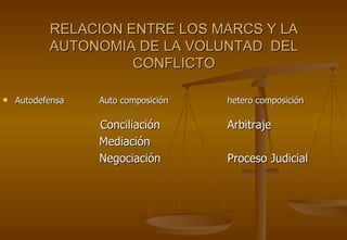 El documento resume los principales aspectos del arbitraje en el Perú. Explica que el arbitraje es un mecanismo alternativo de resolución de conflictos que se basa en la autonomía de la voluntad de las partes. Detalla los tipos de arbitraje, como el nacional e internacional, ad hoc e institucional. También describe las etapas del proceso arbitral y conceptos clave como el convenio arbitral y la importancia de que los laudos arbitrales tengan valor de cosa juzgada.