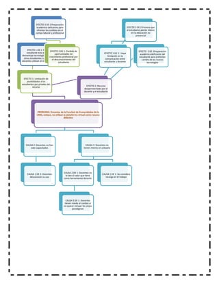 Este documento presenta un árbol de problemas que investiga la limitada utilización de recursos tecnológicos por parte de los docentes y sus efectos negativos en los estudiantes de una universidad en Guatemala. La causa principal identificada es que los docentes no tienen interés en utilizar estas tecnologías debido a que las consideran una carga adicional de trabajo, no les dan el valor apropiado como herramientas docentes y tienen miedo al cambio. Otra causa es que los docentes no han sido capacitados y desconocen cómo usar estas te