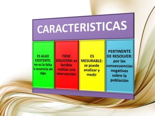 El documento describe el proceso de identificación y priorización de problemas en una comunidad. Primero, es importante definir claramente el problema. Luego, se identifican todas las causas subyacentes a través de un método participativo que involucra a profesionales y la población afectada. Finalmente, se priorizan los problemas asignando puntajes basados en su magnitud, tendencia, vulnerabilidad interna y externa para enfocarse en resolver el problema de mayor puntaje.