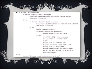 El documento describe los árboles binarios y sus diferentes tipos de recorridos (preorden, inorden y postorden). Un árbol binario es una estructura de datos donde cada nodo puede tener hasta dos hijos. Los recorridos visitan los nodos de diferente manera - preorden visita la raíz primero, inorden visita el subárbol izquierdo, luego la raíz y luego el derecho, y postorden visita los subárboles primero y luego la raíz.