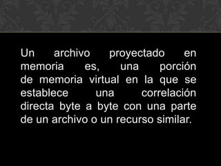 1. La proyección de archivos en memoria permite acceder a archivos como si fueran estructuras de datos en memoria sin copias intermedias.