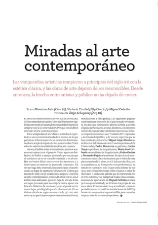 El documento presenta una obra de Daniel Canogar que estará a la venta en la feria de arte contemporáneo ARCO 2011. ARCO atrajo a casi 150,000 visitantes en su última edición y contó con la participación de 197 artistas. El documento también incluye las opiniones y valoraciones de seis expertos sobre cinco obras diferentes que se exhibieron en ARCO, incluyendo piezas de artistas como Anish Kapoor, Damien Hirst, Jin Shi y Tony Cragg.