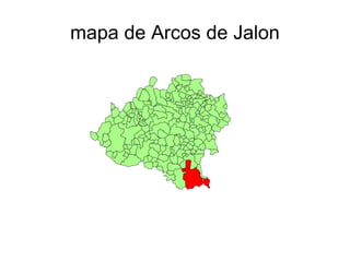 Este documento habla sobre el pueblo de Arcos de Jalón. Menciona que las fiestas patronales se celebran del 13 al 18 de septiembre y atraen a personas de pueblos cercanos así como de Madrid y Zaragoza. También describe las migas de matanza como un plato tradicional hecho de cerdo y menciona que, aunque el autor ya no vive en el pueblo, le trae recuerdos entrañables cuando va a ver lugares de su niñez como el río Jalon y la chopera.