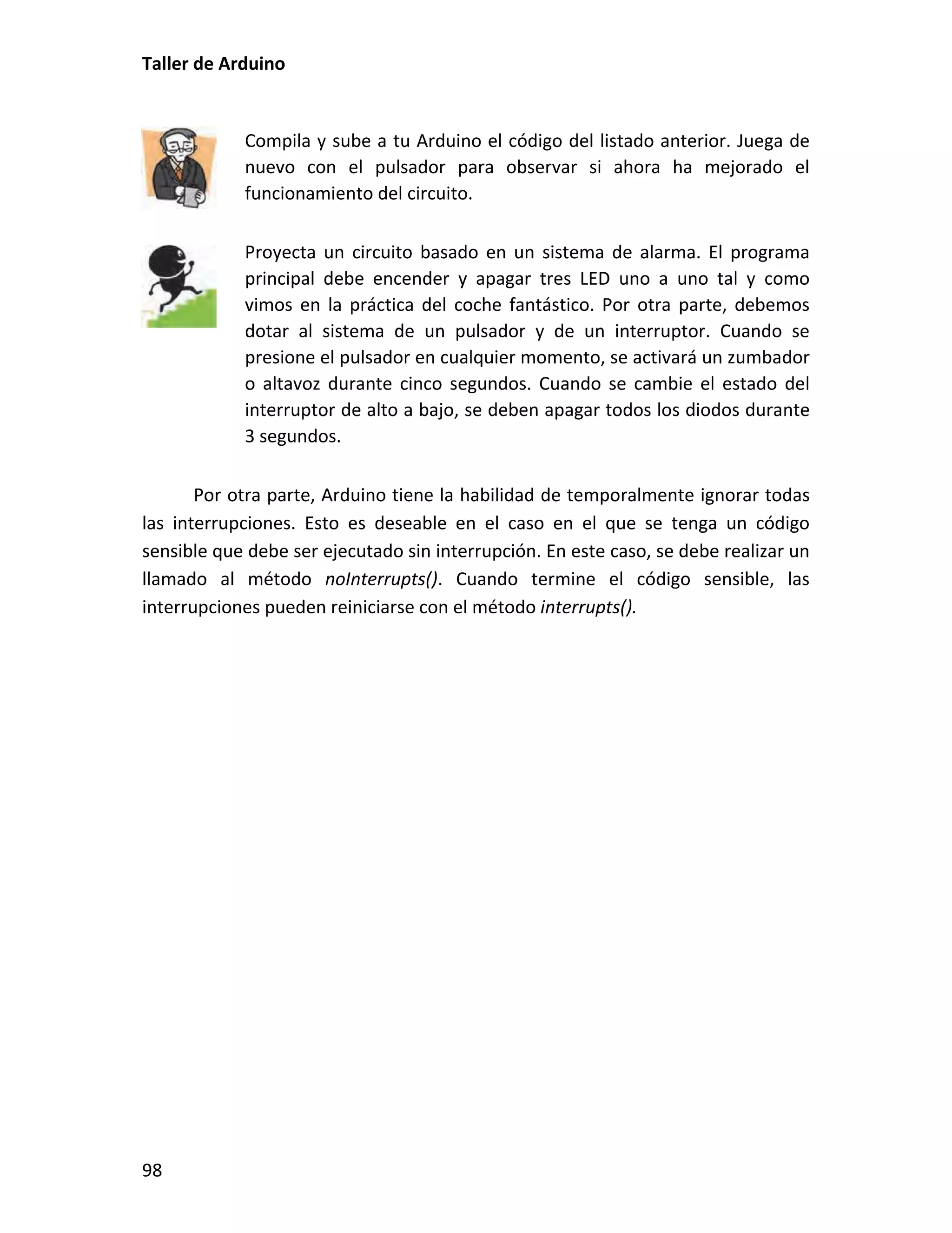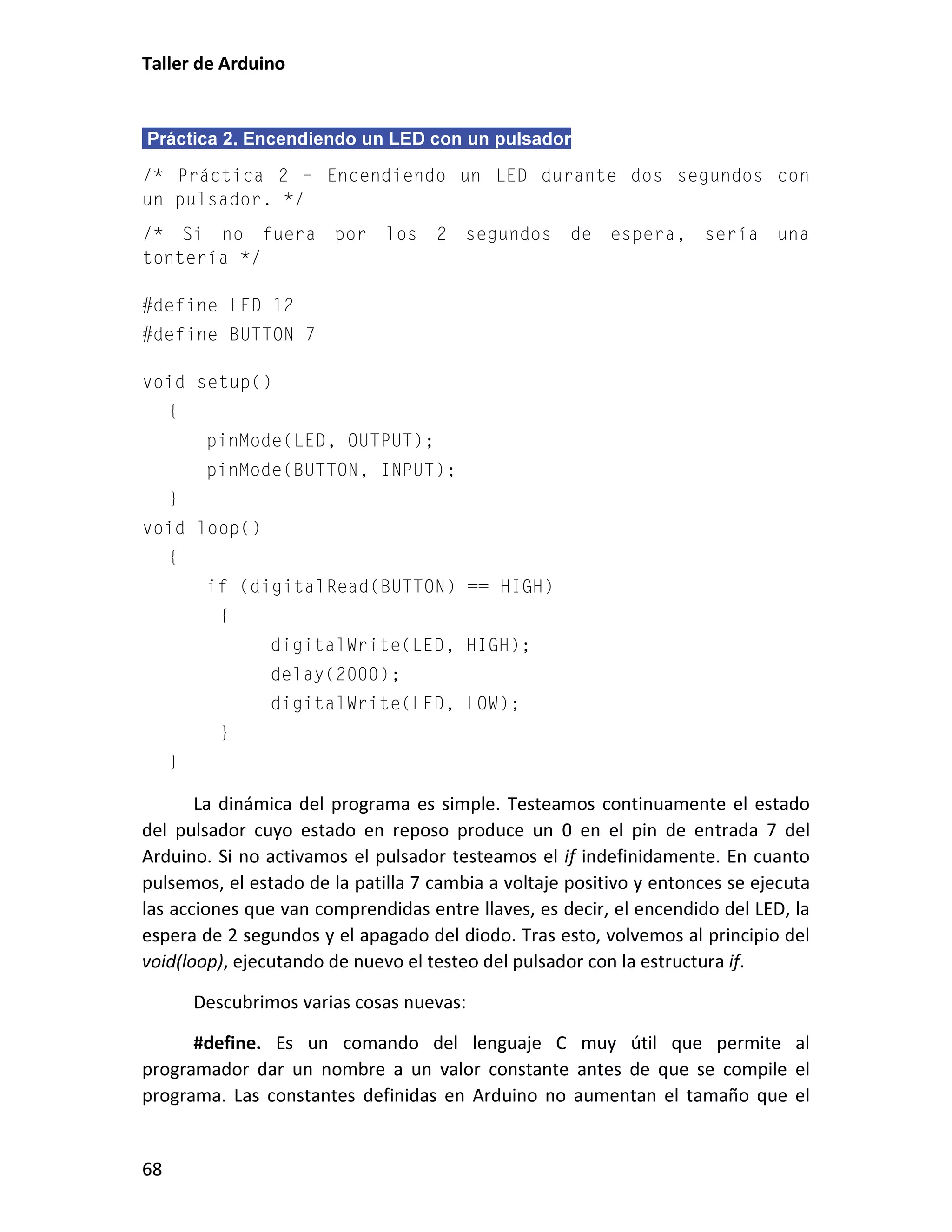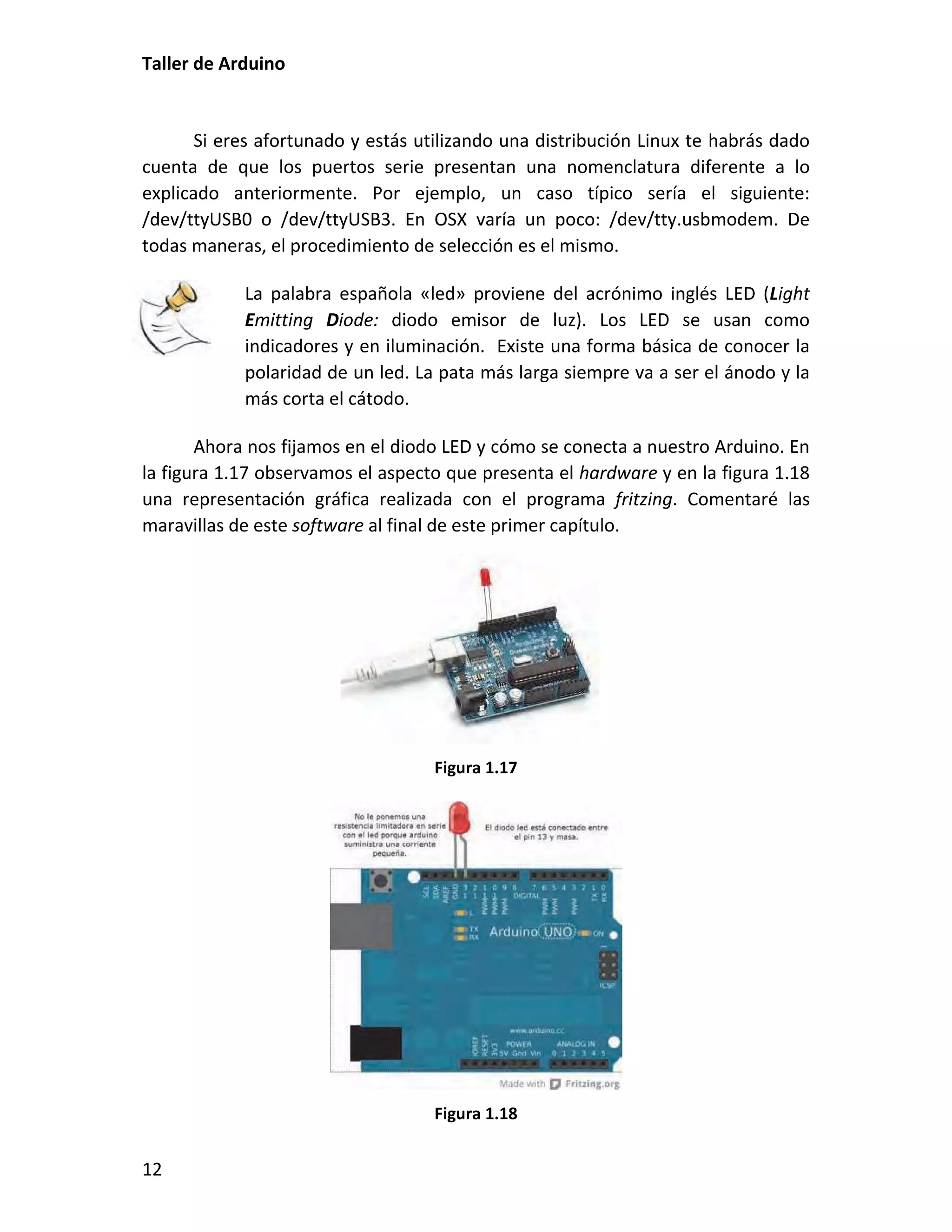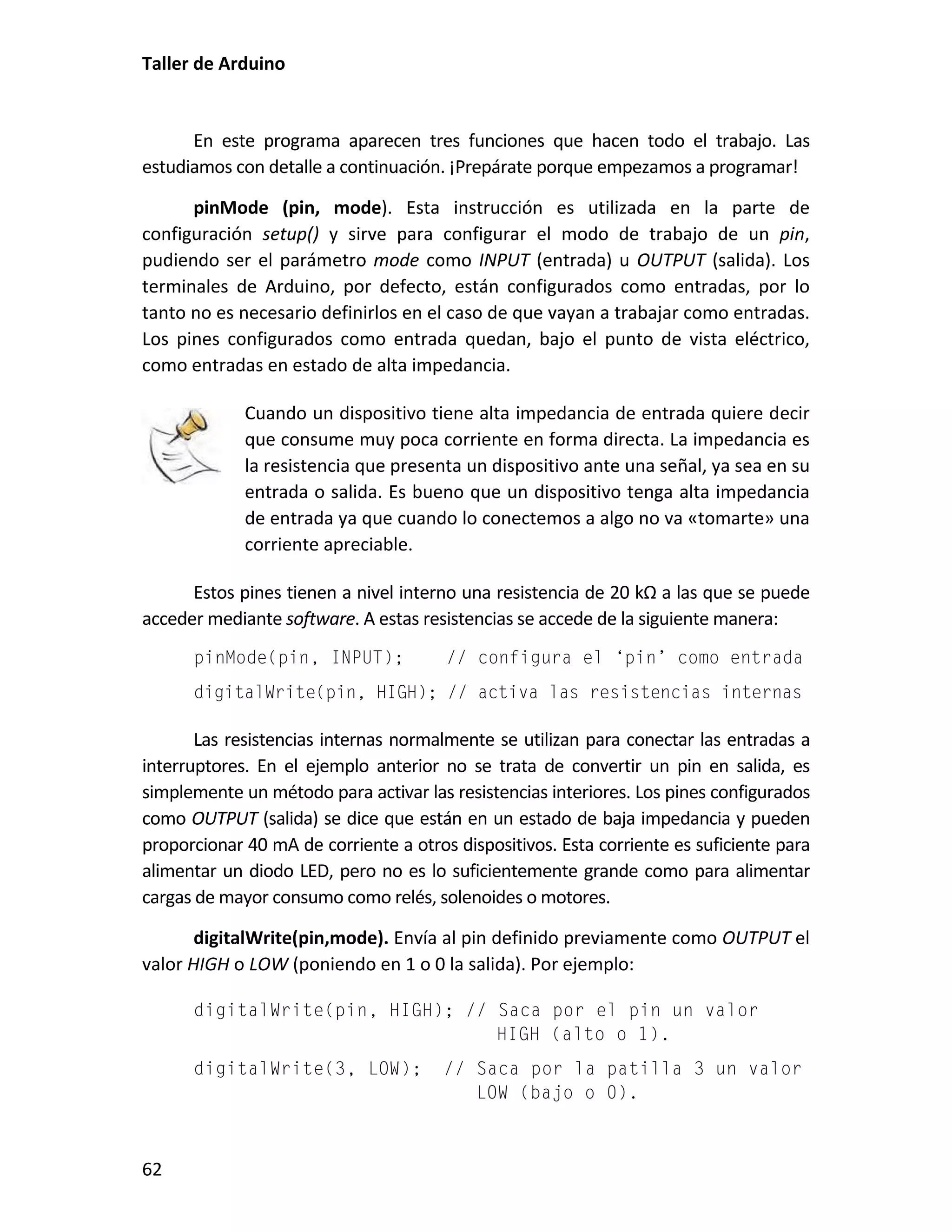 Este documento presenta un taller sobre Arduino. Explica qué es Arduino y cómo instalar el entorno de desarrollo. Luego cubre conceptos básicos de programación como variables, operadores y estructuras de control. Incluye varias prácticas utilizando LEDs, pulsadores, potenciómetros y sensores. También describe librerías y cómo utilizar pantallas LCD con Arduino.