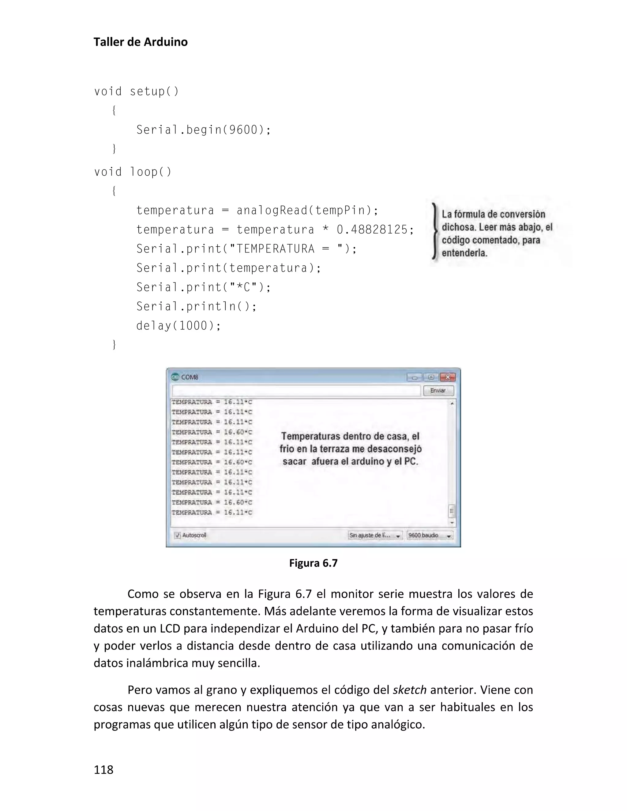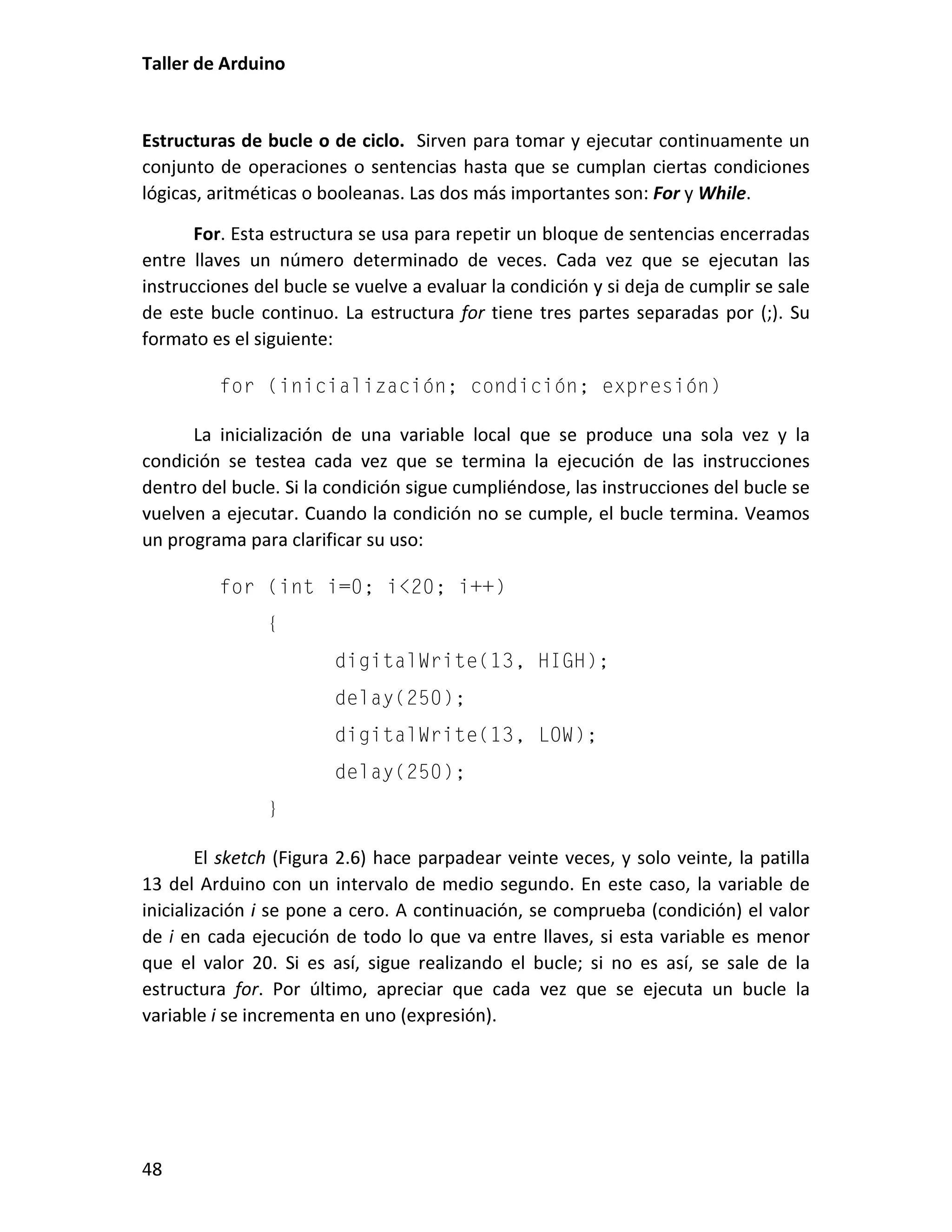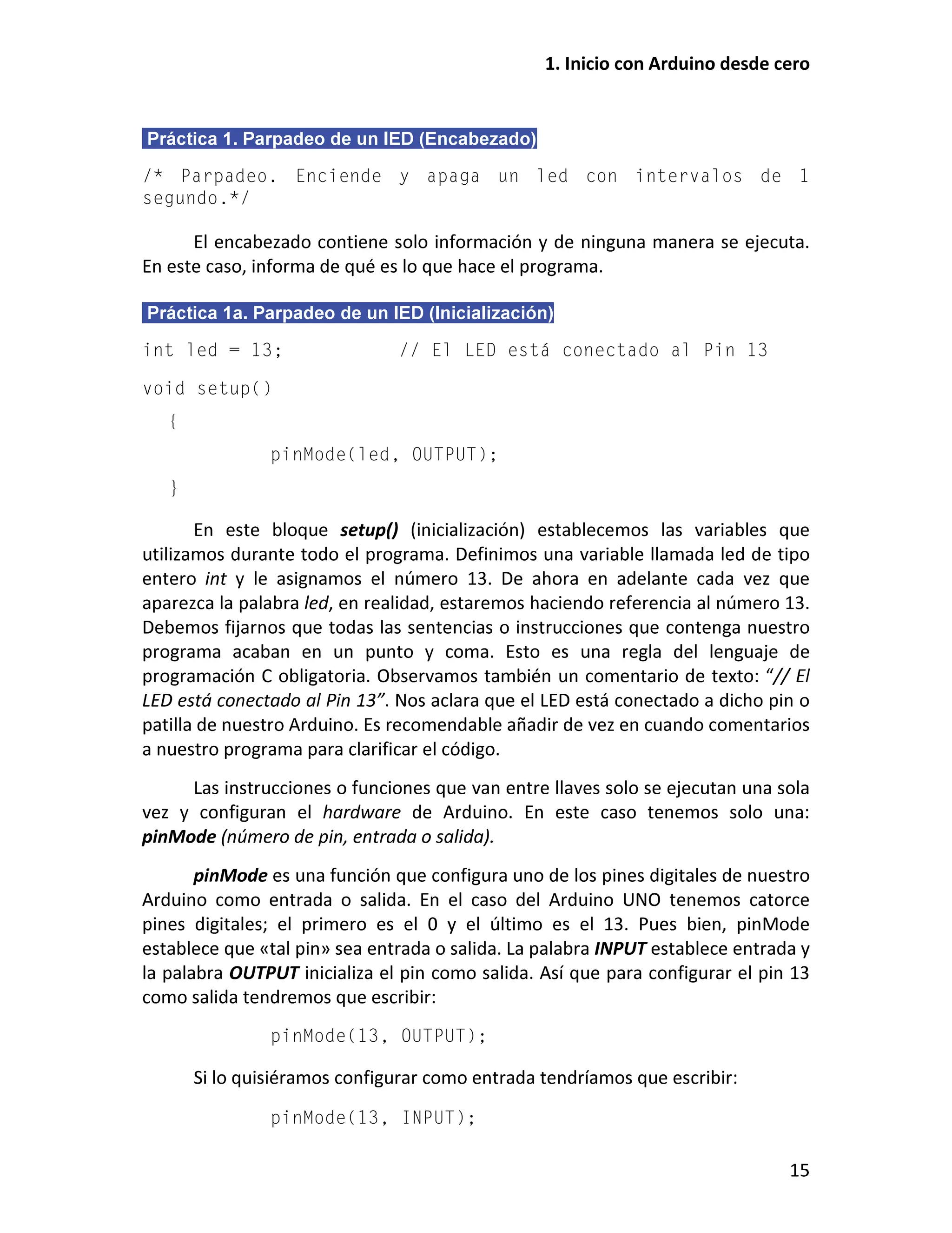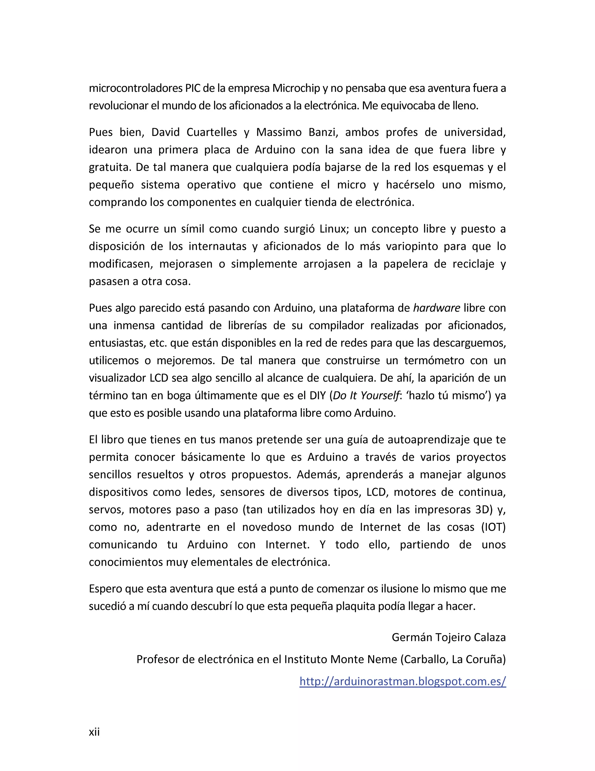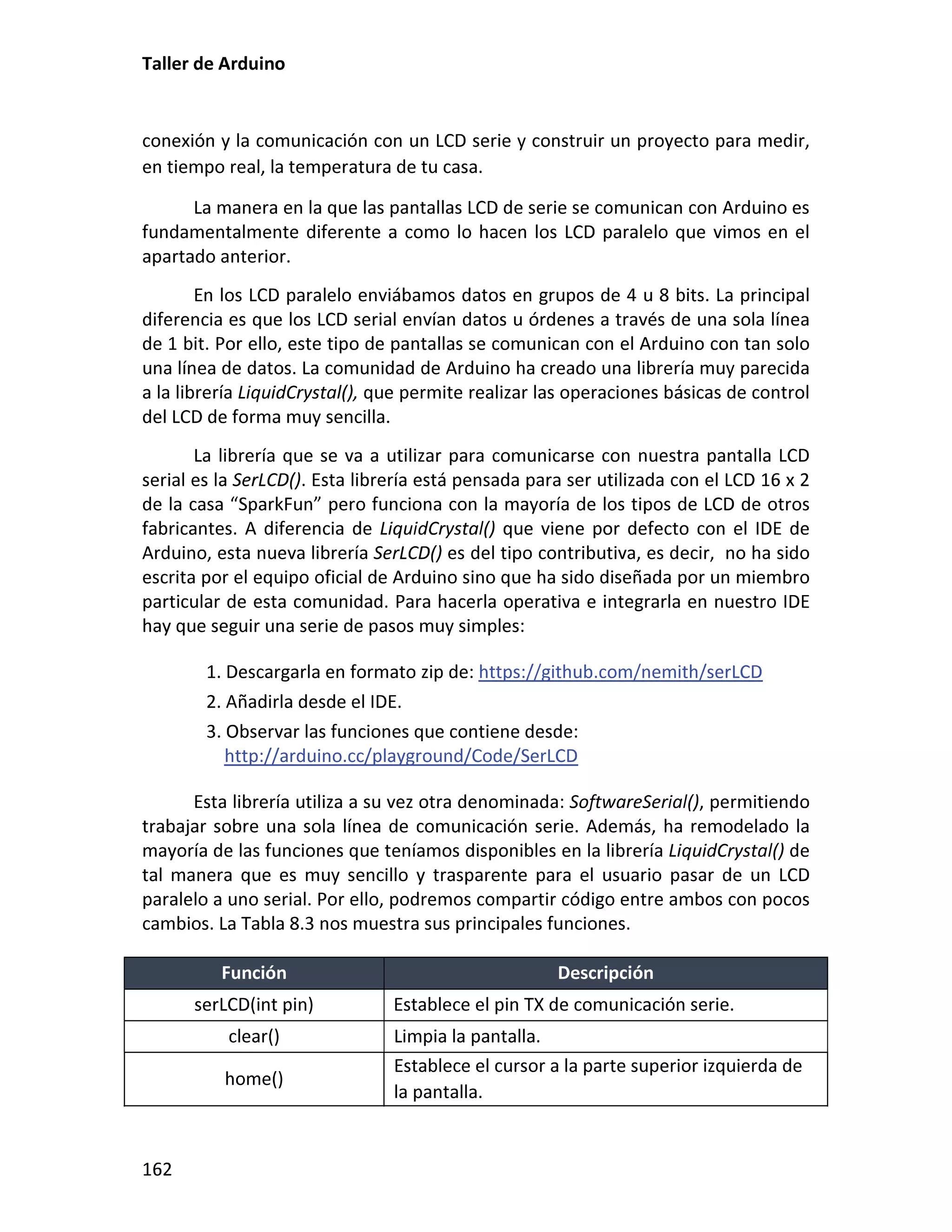 Este documento presenta un taller sobre Arduino. Explica qué es Arduino y cómo instalar el entorno de desarrollo. Luego cubre conceptos básicos de programación como variables, operadores y estructuras de control. Incluye varias prácticas utilizando LEDs, pulsadores, potenciómetros y sensores. También describe librerías y cómo utilizar pantallas LCD con Arduino.