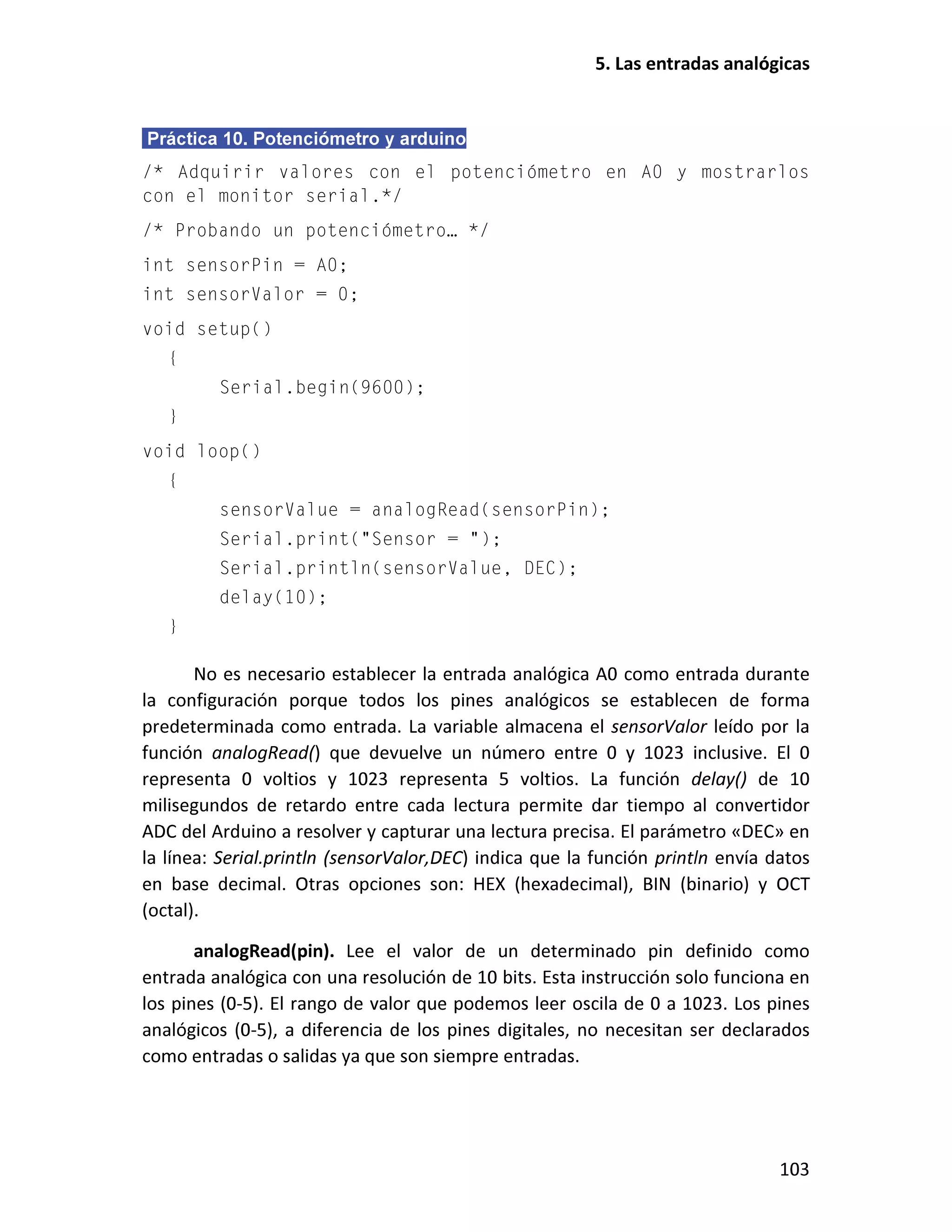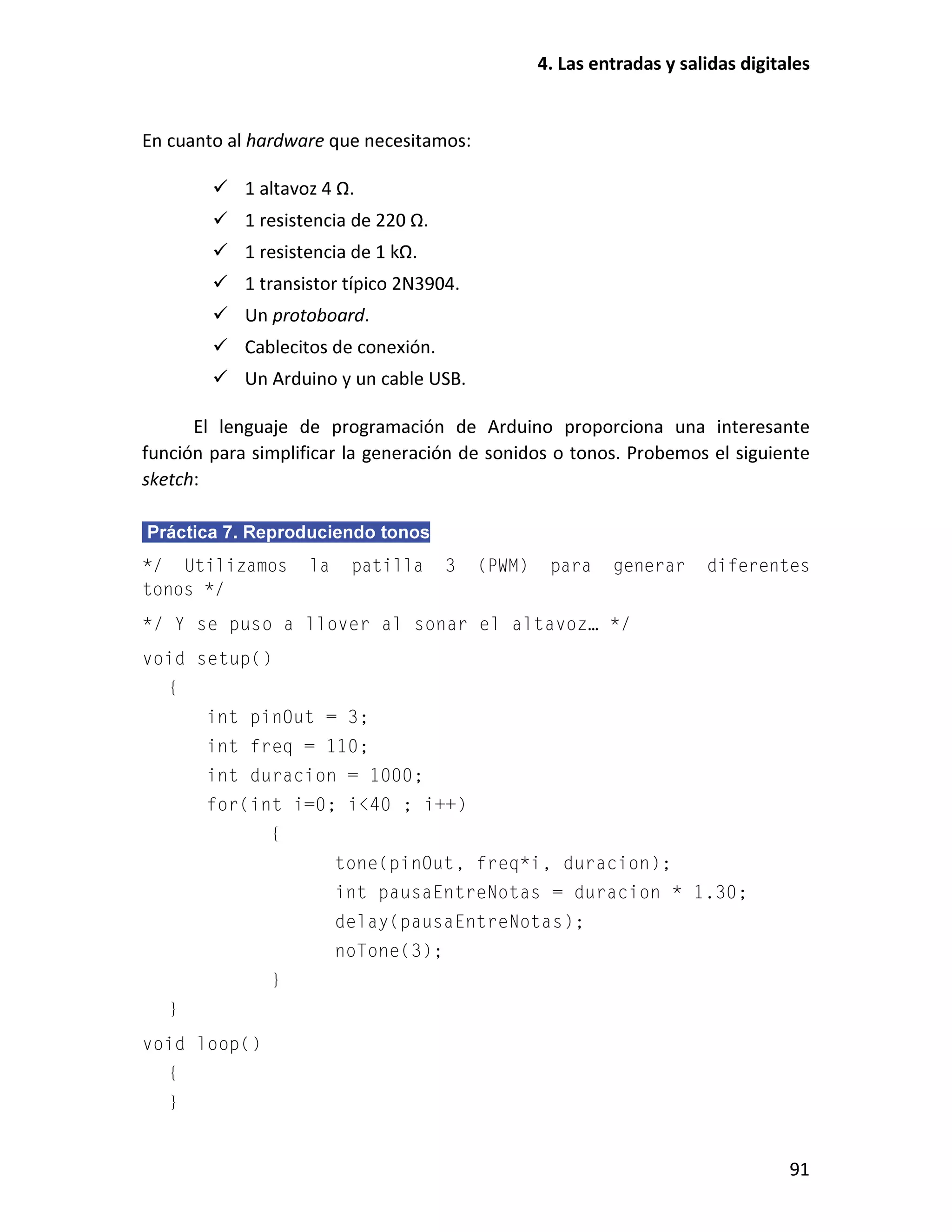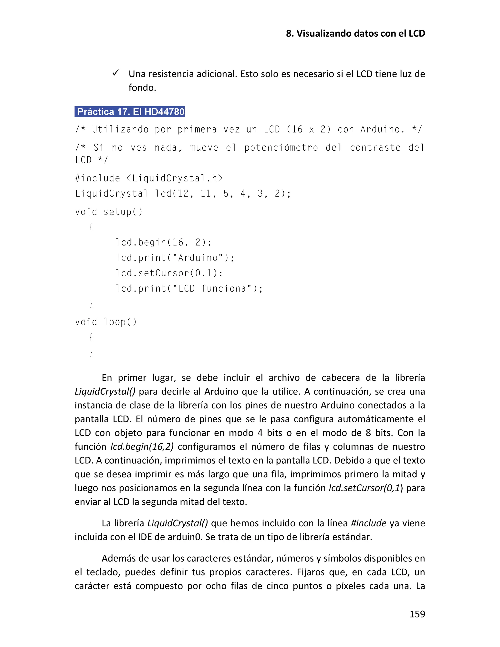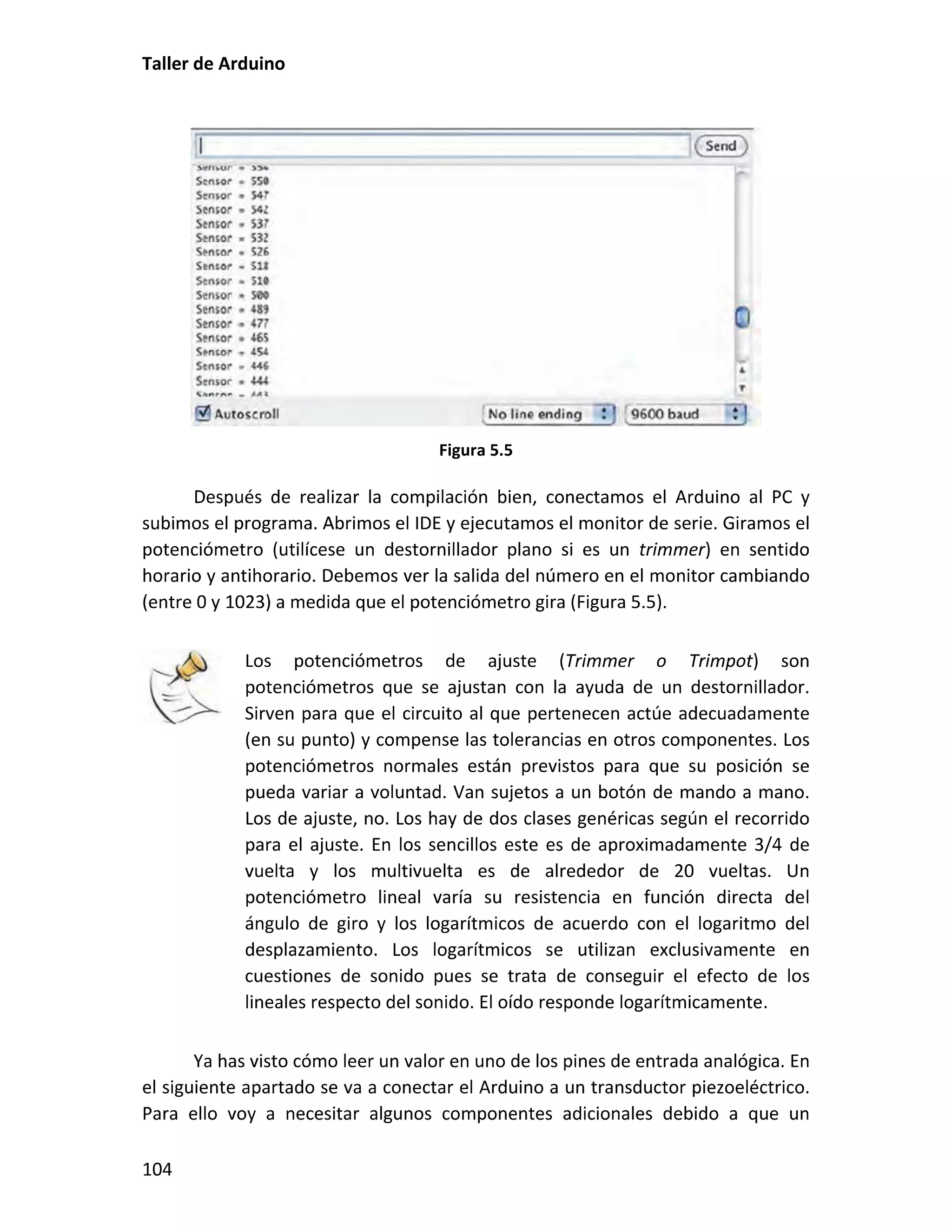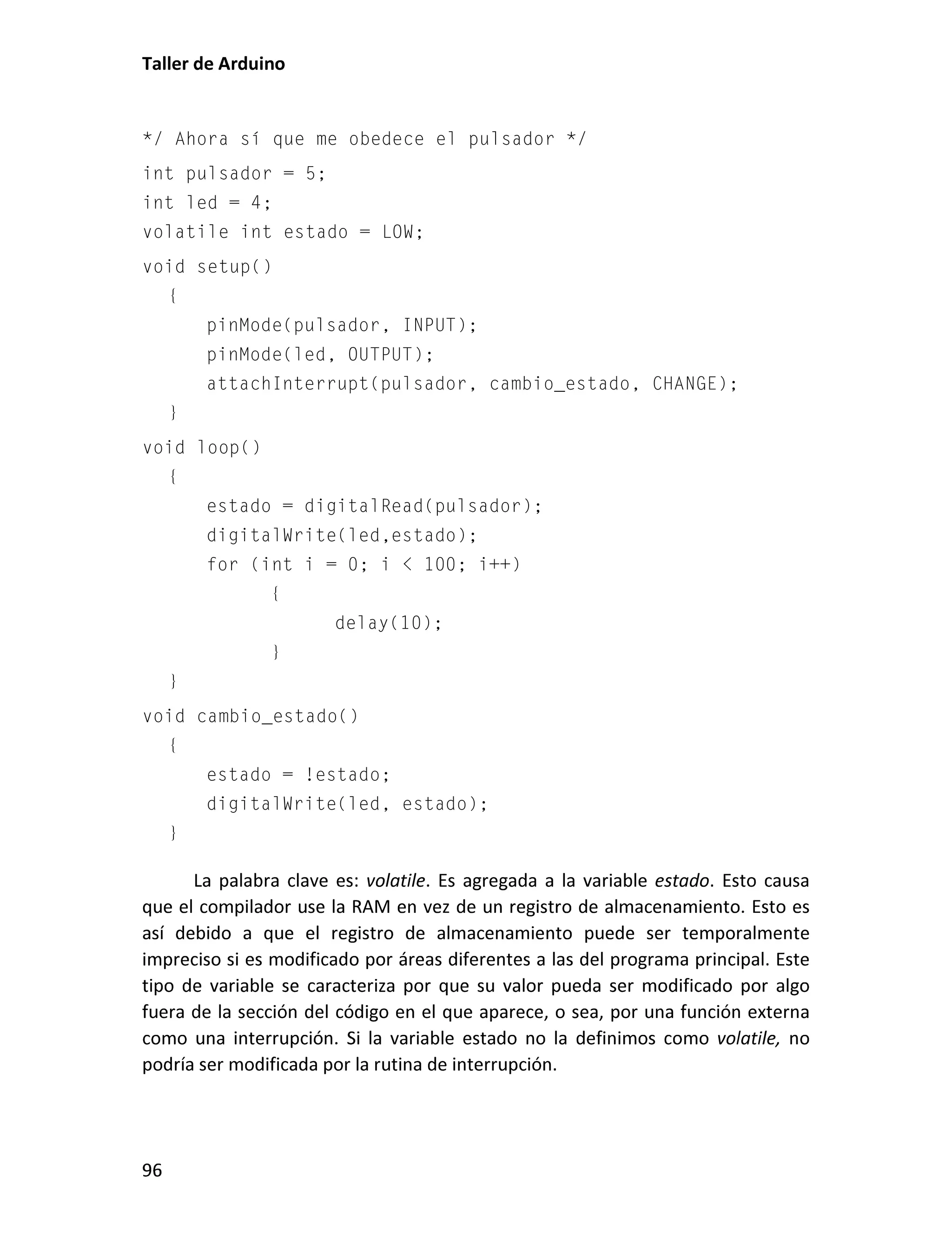 Este documento presenta un taller sobre Arduino. Explica qué es Arduino y cómo instalar el entorno de desarrollo. Luego cubre conceptos básicos de programación como variables, operadores y estructuras de control. Incluye varias prácticas utilizando LEDs, pulsadores, potenciómetros y sensores. También describe librerías y cómo utilizar pantallas LCD con Arduino.