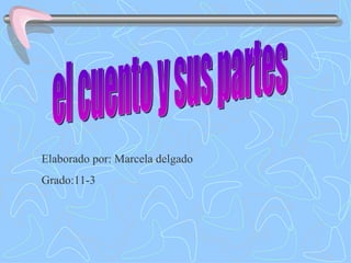 El documento resume las características principales del cuento. Explica que el cuento se caracteriza por su brevedad y que puede desarrollar hechos reales o imaginarios. Describe que el cuento se compone de tres partes: la presentación de los personajes, el conflicto, y la solución del conflicto. También enumera algunas características del cuento como la ficción, la estructura centrípeta, y la brevedad. Finalmente, menciona algunos subgéneros populares del cuento como el policial, ciencia ficción,