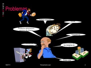 Este documento describe los principios del Pensamiento Lean, incluyendo la eliminación de desperdicios, el flujo continuo de valor para el cliente, la producción bajo demanda (pull), y la búsqueda de la perfección. El objetivo del Pensamiento Lean es entregar valor perfecto al cliente a través de procesos libres de desperdicios que crean flujo y son impulsados por la demanda.