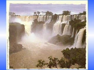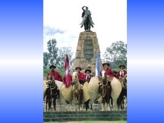 Este documento presenta una lista de lugares notables de Argentina, incluyendo paisajes naturales como la Quebrada de Humahuaca en Jujuy, el Tren de las Nubes en Salta, y el Fitz Roy en la Patagonia; sitios culturales como las Reducciones Jesuíticas en Misiones y la bodega en Mendoza; y ciudades como Buenos Aires, La Plata, Mar del Plata, Bariloche y Ushuaia. El autor expresa su amor por su patria Argentina y pide a la Virgen María que la proteja.