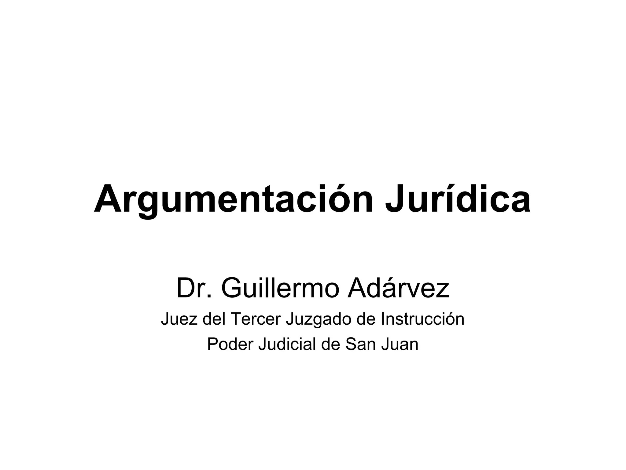 El documento habla sobre la argumentación jurídica. Explica que la argumentación tiene como objetivo ganar la adhesión del público a una tesis mediante el uso de razones y pruebas. La argumentación otorga dos justificaciones al razonamiento judicial: interna a través de la formulación correcta de premisas, y externa mediante la fundamentación y motivación de dichas premisas. También clasifica los diferentes tipos de entimemas que pueden usarse en el silogismo judicial.