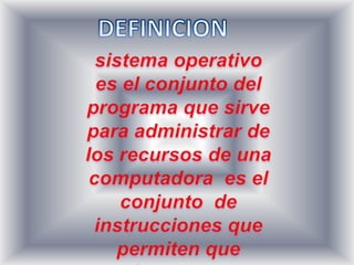 El sistema operativo gestiona los recursos de hardware y provee servicios a los programas de aplicación, aliviando a los programadores de tener que tratar con estos detalles. La mayoría de dispositivos electrónicos como teléfonos, reproductores DVD y computadoras incluyen un sistema operativo. Un sistema operativo comúnmente se refiere solo al núcleo del sistema y no a herramientas adicionales. Algunos ejemplos de sistemas operativos son Mac OS X, Linux, y Windows XP.