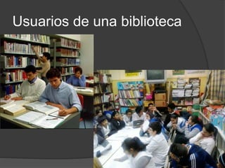 Este documento trata sobre los estudios de usuarios y la alfabetización informacional. Explica que los usuarios son fundamentales para las bibliotecas y que es importante realizar estudios directos e indirectos de los usuarios para conocer sus necesidades informativas. También describe diferentes métodos para estudiar a los usuarios y define la alfabetización informacional como el proceso de adquirir habilidades para acceder, evaluar y usar información de manera ética y efectiva.
