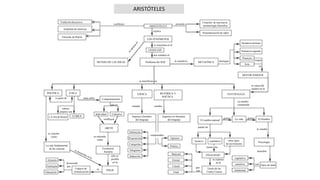 El documento resume las principales ideas y campos de estudio de Aristóteles. Aristóteles creó una nueva terminología filosófica y estudió temas como los fenómenos, el mundo de las ideas, el lenguaje, la política, la ética, la felicidad, el bien, la naturaleza, la lógica, la retórica, la poética y la metafísica. También distinguió entre sustancia primera y segunda, y explicó conceptos como potencia, acto, las cuatro causas y el motor inmóvil.